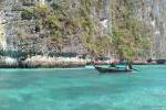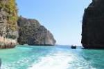 W trakcie rejsu zatrzymaliśmy się przy Viking Cave, potem postój na Maya Bay - słynnej z filmu z Di Caprio plaży z drobniutkim jak mąka piaseczkiem i niestety tłumami turystów kłębiących się na brzegu w poszukiwaniu kawałka wolnego miejsca do zdjęcia, na którym byłoby cokolwiek logicznego widać. Aż boję się pomyśleć jak to miejsce wygląda w pełni sezonu. Po krótkim snurkowaniu w Maya Bay popłynęliśmy na Phi Phi Don, gdzie mieliśmy lunch i krótki postój. Tu kolejny i największy dla mnie zawód, bo jechałem przez pół świata po zdjęcie z punktu widokowego na Phi Phi, tymczasem z braku czasu nie było nawet szans aby tam wejść.